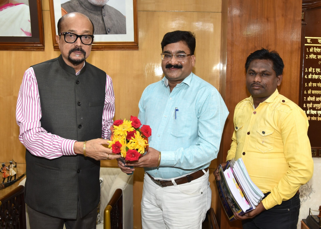 राज्यपाल रमेन डेका से आज यहां राजभवन में तिफरा बिलासपुर के गेंडी लोक नृत्य कलाकार अनिल कुमार गढ़ेवाल ने सौजन्य भेंट की।