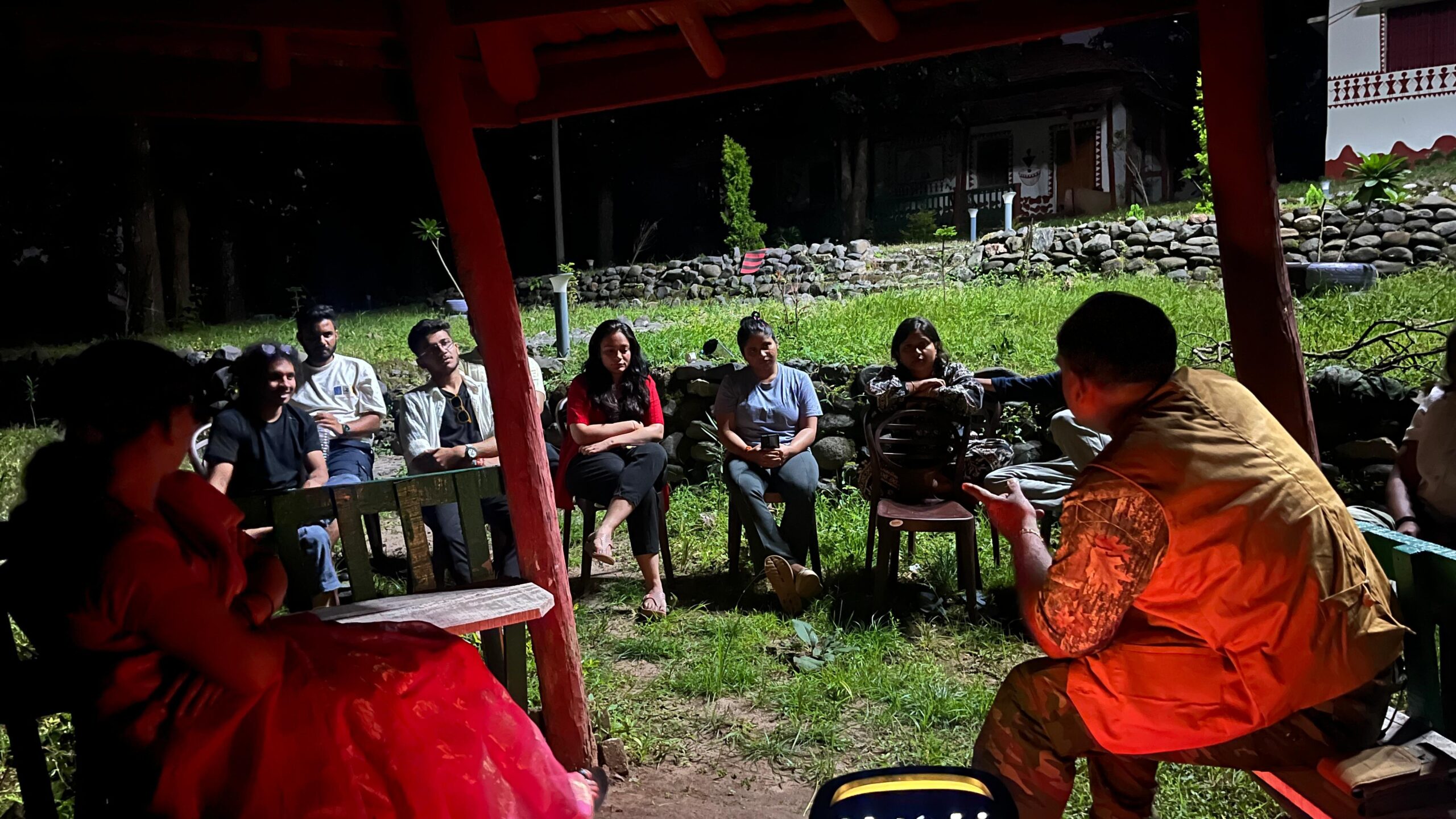 कार्यशाला के प्रथम सत्र में पटना बिहार से आए फिल्ममेकर आर्यन चंद्र प्रकाश ने ग्रामीण जीवन के संघर्ष और उनकी जिजीविषा को कहानी के रूप में दर्ज करने के महत्व पर अपना विचार साझा किए। उन्होंने बताया कि इन्हीं कहानियों के आधार पर फिल्म और डॉक्यूमेंट्री निर्माण कैसे संभव हो सकता है। द्वितीय सत्र में लखनऊ उत्तर प्रदेश से आए शिक्षाविद पल्लवी ने ग्रामीण बच्चों के करियर और व्यावहारिक शिक्षा की उपयोगिता पर प्रकाश डाला। कार्यशाला के अंतिम सत्र में पर्यावरणविद संजय पयासी ने प्रतिभागियों और ग्रामीणों को जंगल भ्रमण के दौरान स्टोरी-टेलिंग के माध्यम से जलवायु परिवर्तन और प्रकृति संरक्षण के विभिन्न पहलुओं को समझाया। उन्होंने बताया कि हमारी शहरी भागदौड़ भरी जीवनशैली से जनित अवसाद प्रकृति के समीप जाने से ठीक होता है।