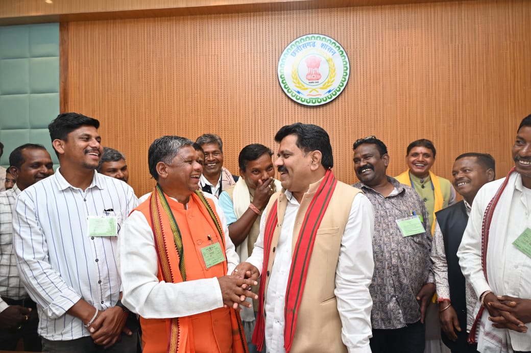 बस्तर संभाग से आए विभिन्न ग्राम पंचायतों के सरपंचगणों ने आज नवनिर्मित छत्तीसगढ़ विधानसभा भवन का भ्रमण कर विधानसभा की कार्यप्रणाली और लोकतांत्रिक प्रक्रियाओं को नजदीक से देखा। इस अवसर पर सरपंचों ने उपमुख्यमंत्री विजय शर्मा से मुलाकात भी की। बस्तर के जन जन में लोकतंत्र में विश्वास जगाने के लिए उपमुख्यमंत्री विजय शर्मा की पहल पर बस्तर संभाग के विभिन्न ग्रामों का प्रतिनिधित्व करने वाले सरपंचों को नवीन विधानसभा भवन का भ्रमण कराया गया।